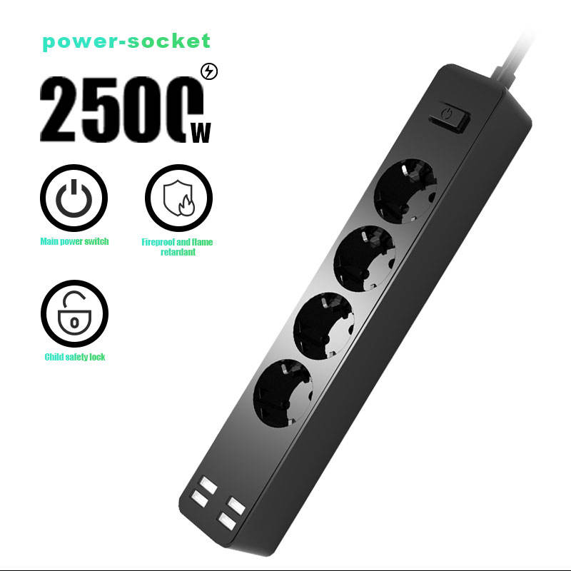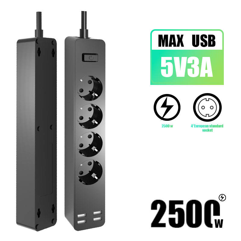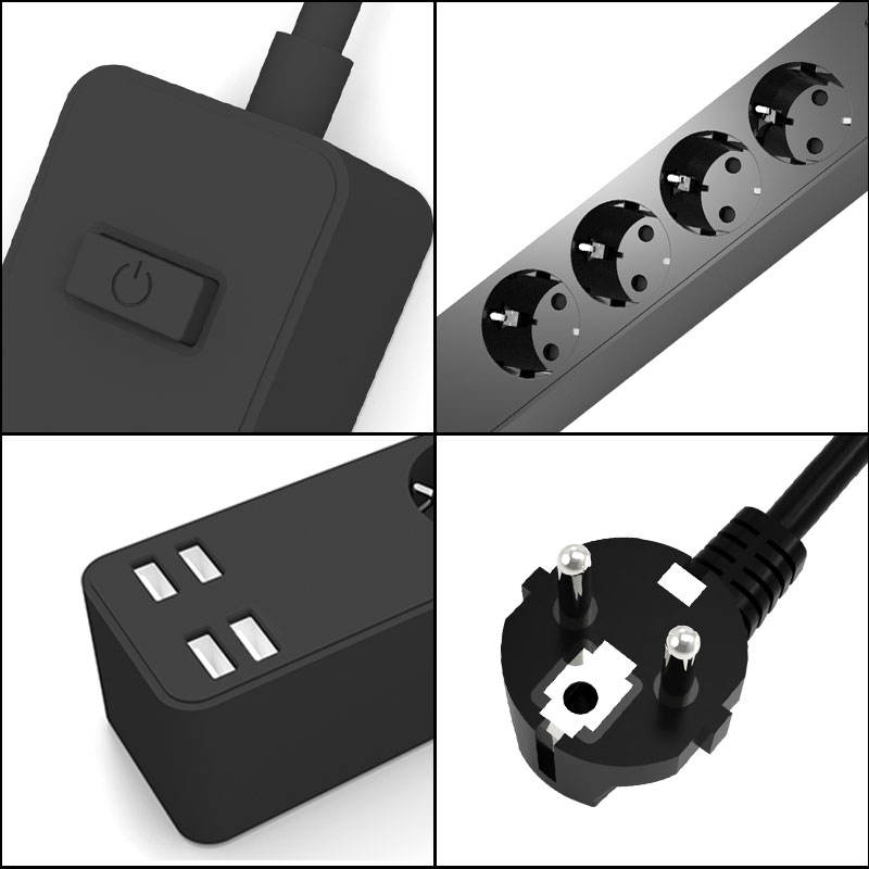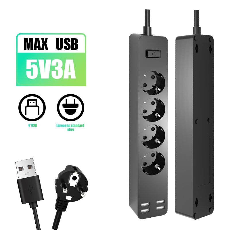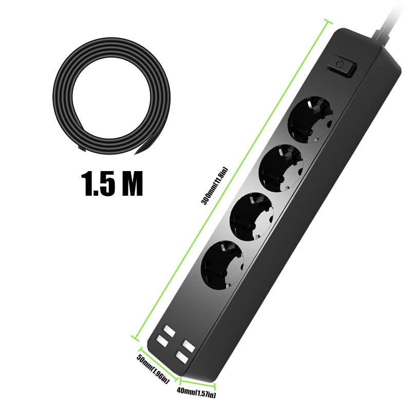Regleta de alimentación estándar de la UE, puertos USB, toma de corriente con salidas de 3AC y 4 cables de extensión blancos, 10 tomas, cable de extensión de 1,5 m