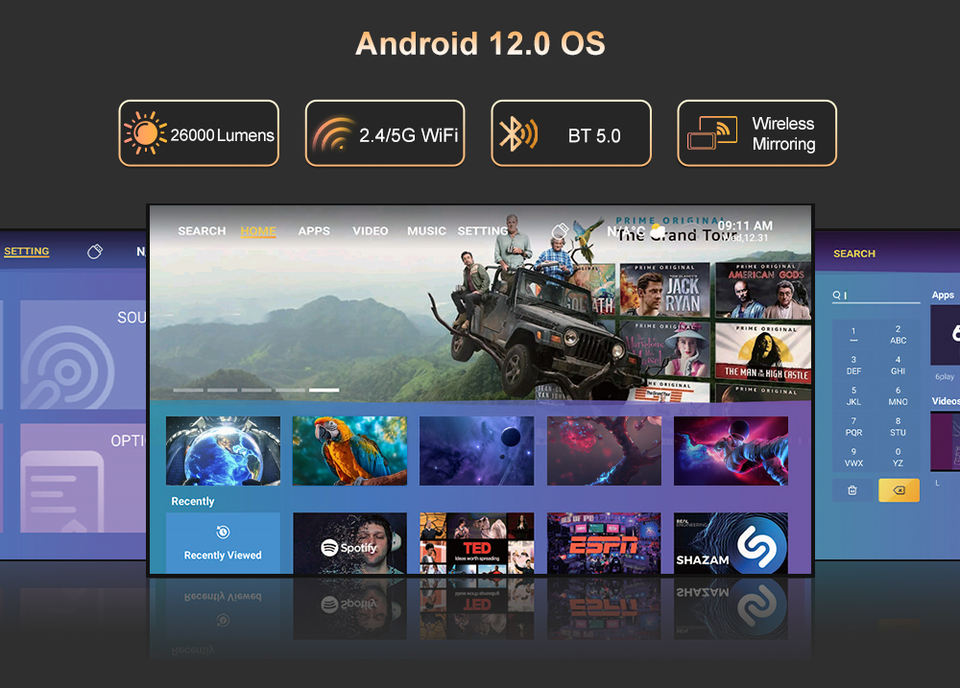 Proyector 4K Ultra HD de 15000 Lúmenes, Inteligente, Android, Micro Inalámbrico, Doble Wifi, Mini Proyector, Cine en Casa, Entrega Rápida, Stock en la UE