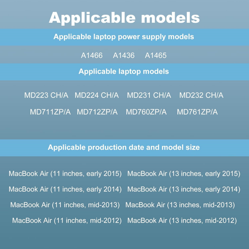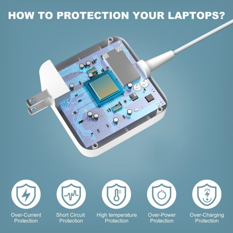 Cargador Rápido con Enchufe EU UK US para MacBook Air de 11 y 13 Pulgadas, 14.85V 3.05A, Carga USB de 45W, Fuente de Alimentación con Punta en T para Apple