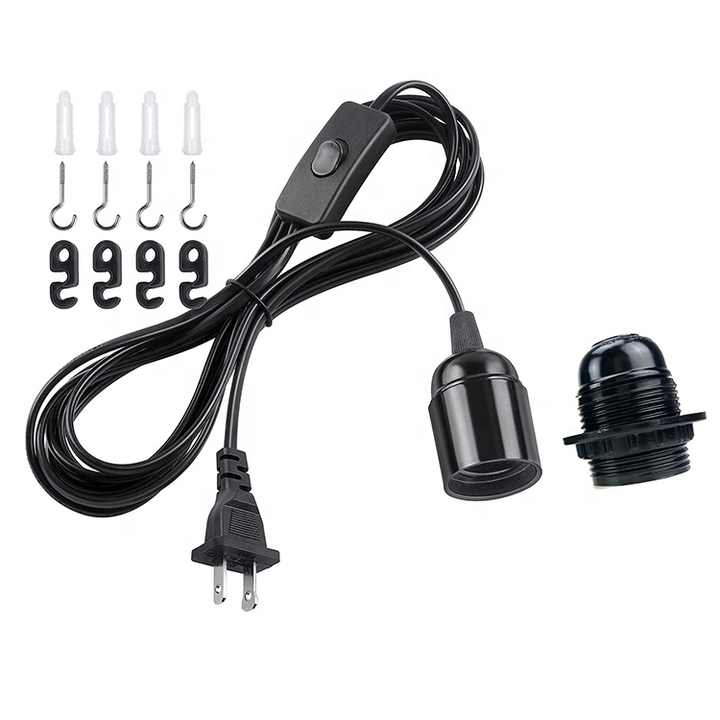 Juego de Cable de Alimentación con Enchufe EU/US, Cable de PVC Negro y Blanco para Lámpara Colgante Individual, Conector Macho de CA con Interruptor Manual y Portalámparas de Baquelita