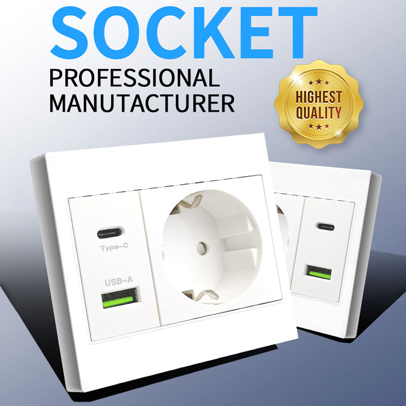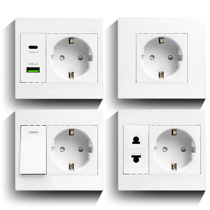 Interruptores y Enchufes de Pared Universales para la UE con Control de Presión de Luz, USB Tipo-C, Estándar 86, Irlandés, Europeo, Tailandés, de Una Sola Toma