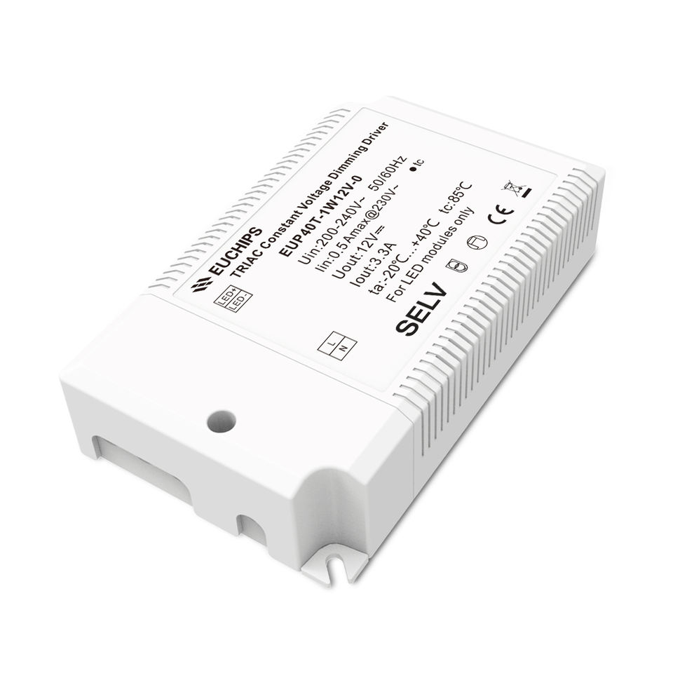 Controlador LED de Silicio EUCHIPS 24V DC 40W, Salida de Voltaje Amplio Constante, Tipo Triac de Salida Única, 50/60Hz, Certificado CE