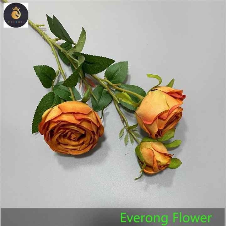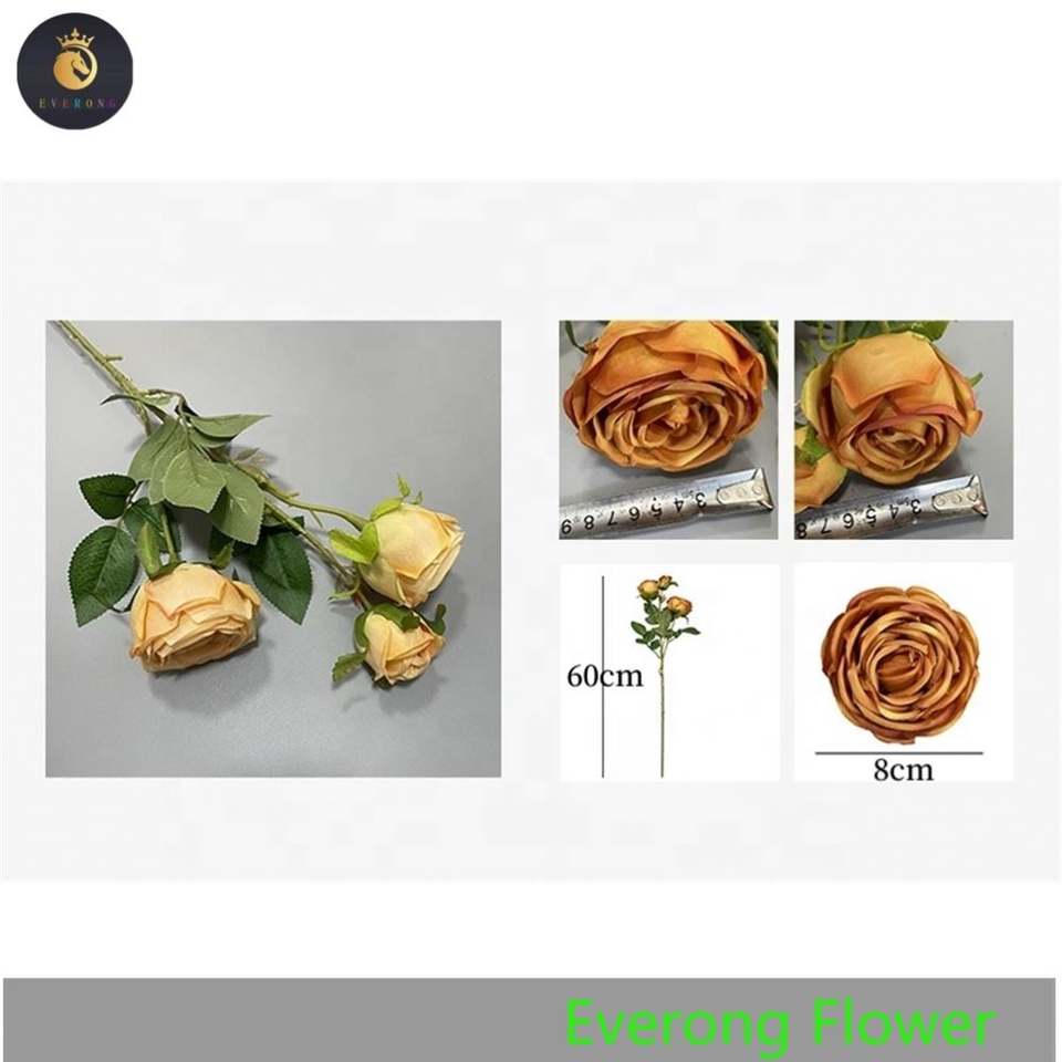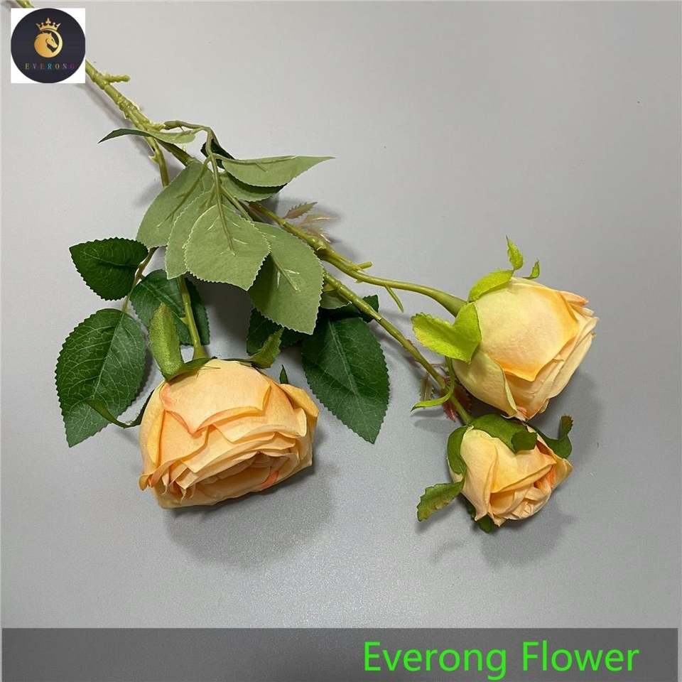 EV 964 Venta Directa princesa artificial Rosa 3 tenedores seda mostaza amarillo Rosa flor boda centro de mesa flor