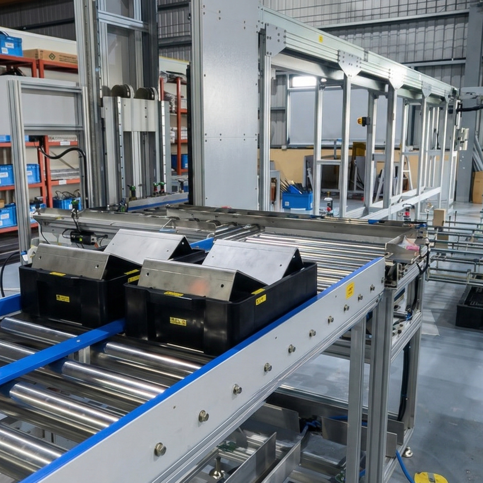 Application:Roller conveyor with customizable product positioning/displacement
