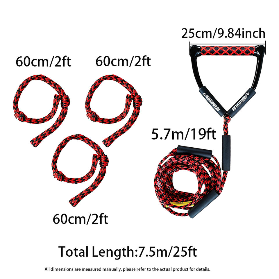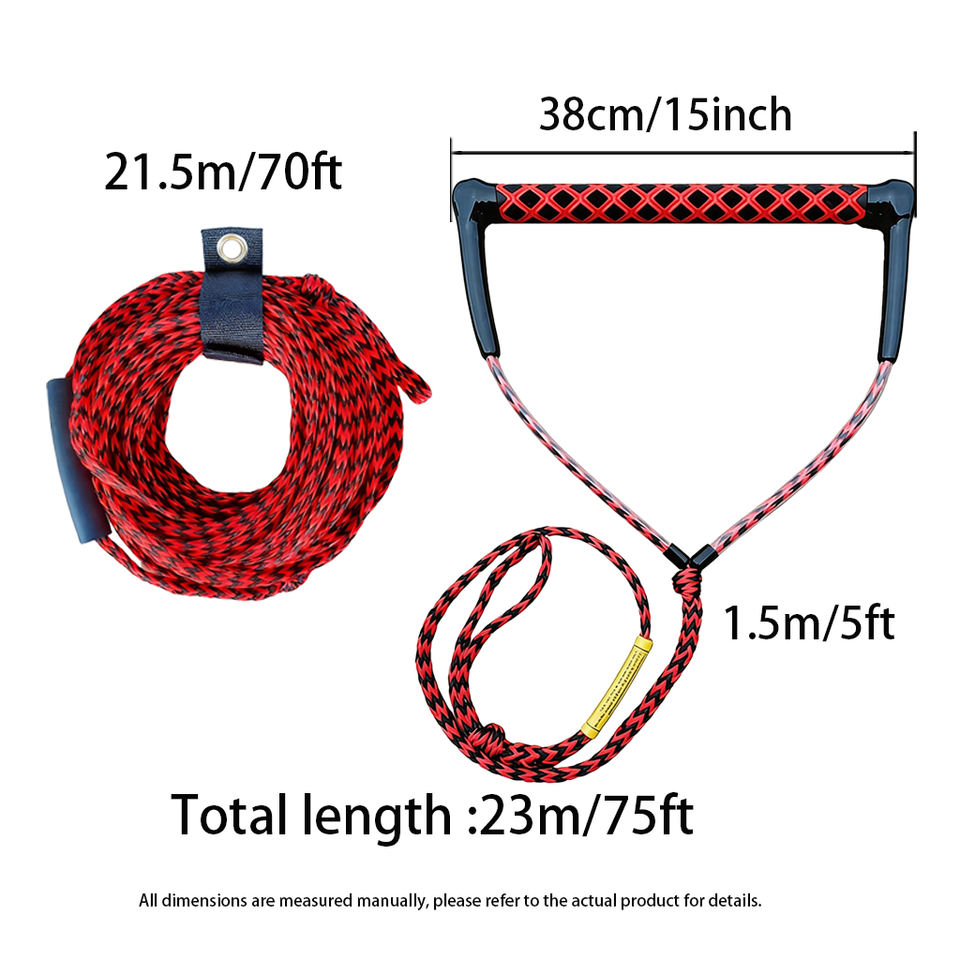 Cuerda de esquí unisex para principiantes con mango de EVA para surf, wakeboard y esquí acuático, con cuerpo de PE trenzado hueco para remolque de bodyboard y slalom.