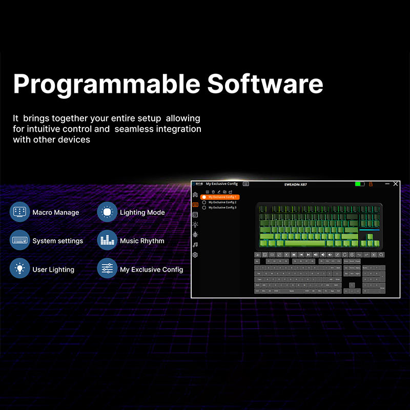 Teclado Mecánico EWEADN X87 de 87 Teclas Trimodo Inalámbrico con Retroiluminación RGB 75% Compacto Intercambiable en Caliente USB-C Nuevos Interruptores Kailh PBT para Gaming