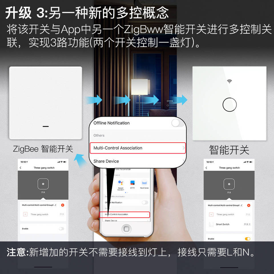 Interruptor de pared inteligente EWeLink con control por aplicación Zigbee, 1 canal, con cable neutro, panel de PC ignífugo blanco y gris