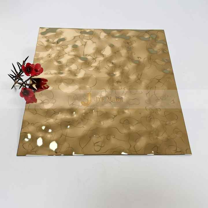 Panel de Pared Decorativo 3D de Acero Inoxidable EX034, Color Dorado 8K, Diseño de Ondas de Agua, Lámina de Acero Inoxidable 304 201 con Acabado Espejo Dorado