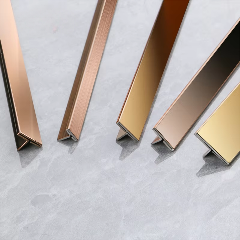 EX186 Muestra gratuita Perfiles de azulejos JYF Embellecedor de azulejos de acero inoxidable para muebles de pared Decoración de armario Espejo dorado OEM Tiras planas