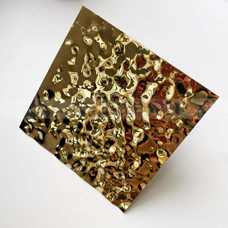 Lámina Decorativa de Acero Inoxidable EX259 SS 304 con Relieve, Color Dorado, Diseño de Ondas de Agua, para Techo y Pared