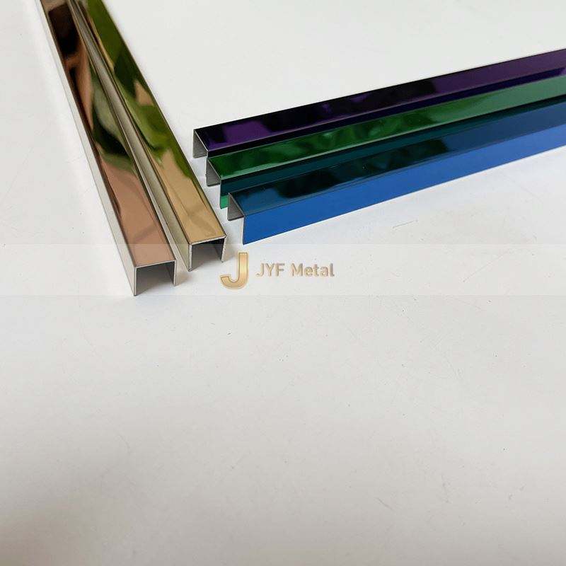 Perfil en U de Acero Inoxidable con Acabado PVD Color EX476 para Decoración Interior de Hoteles y Centros Comerciales, Bordes de Paredes y Pisos, Acabado Espejo Cepillado