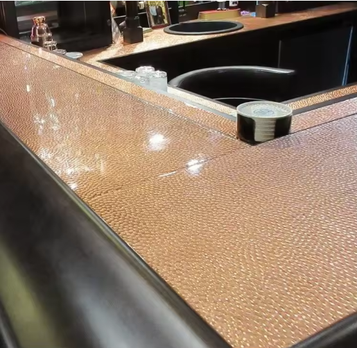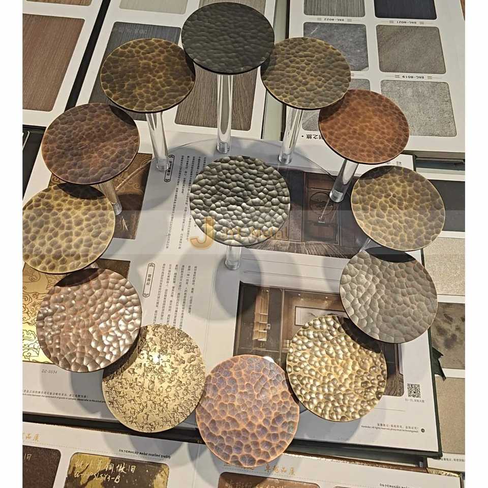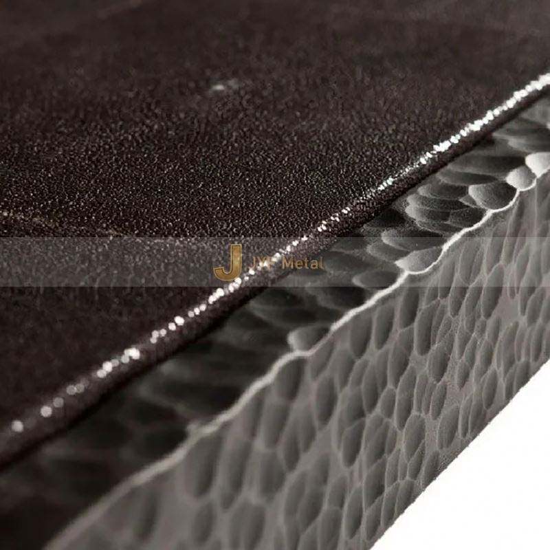 Placa Decorativa de Acero Inoxidable 304J1, Color Personalizado EX777, Patrón Martillado a Mano, Corte y Doblado, Aplicación en Paredes/Techos