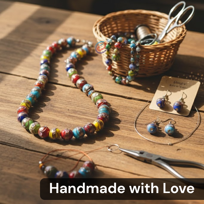 EXCEL EXPORTS Cuentas Sueltas de Vidrio Lampwork Multicolor de 8 Pulgadas (13x17mm) | Cuentas Decorativas Hechas a Mano para Manualidades