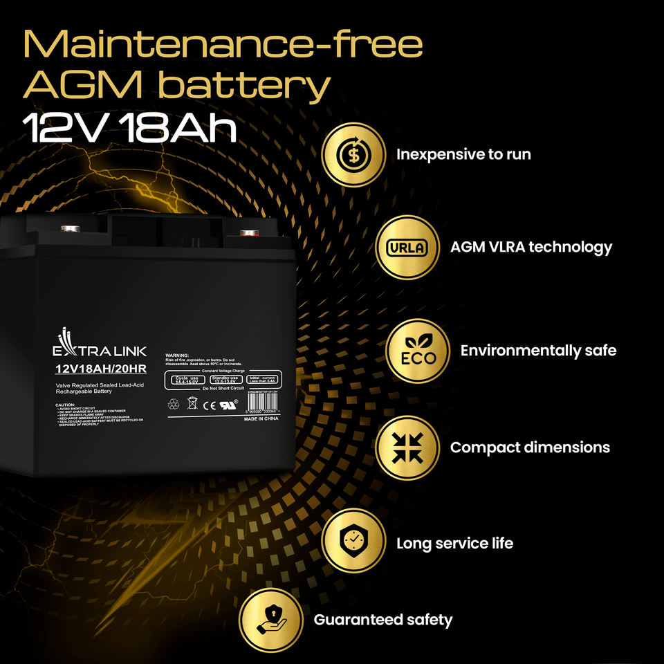 Acumulador de batería EXTRALINK AGM, 12V, 18AH, energía renovable, sin mantenimiento, 12v