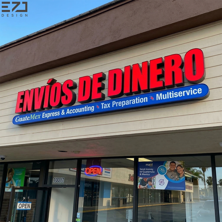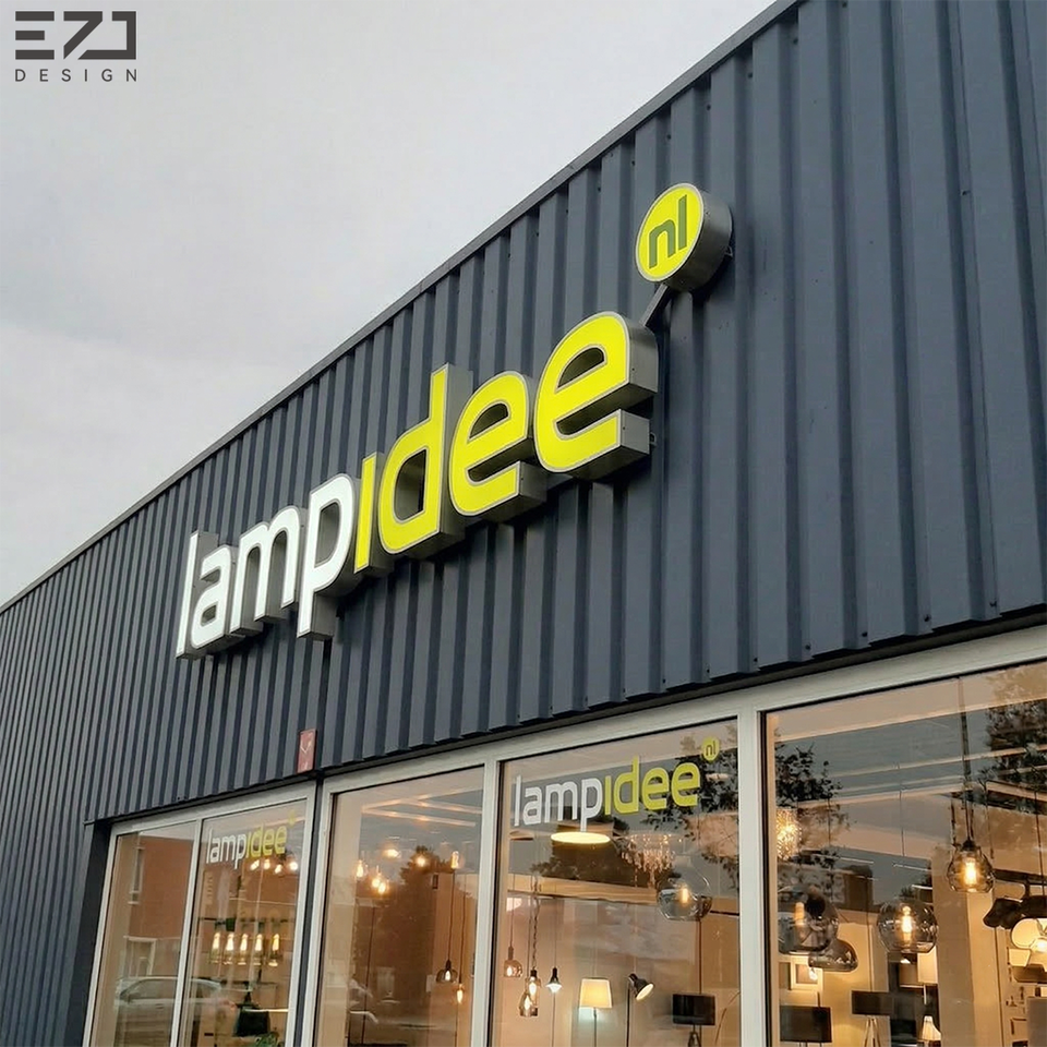 Letrero LED 3D Personalizado EZD para Tiendas, Letras de Canal Acrílicas Iluminadas Montadas en Pared, Señalización Comercial para Agencias y Tiendas Minoristas