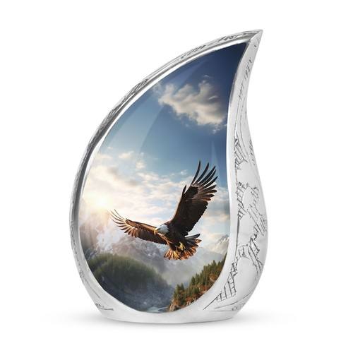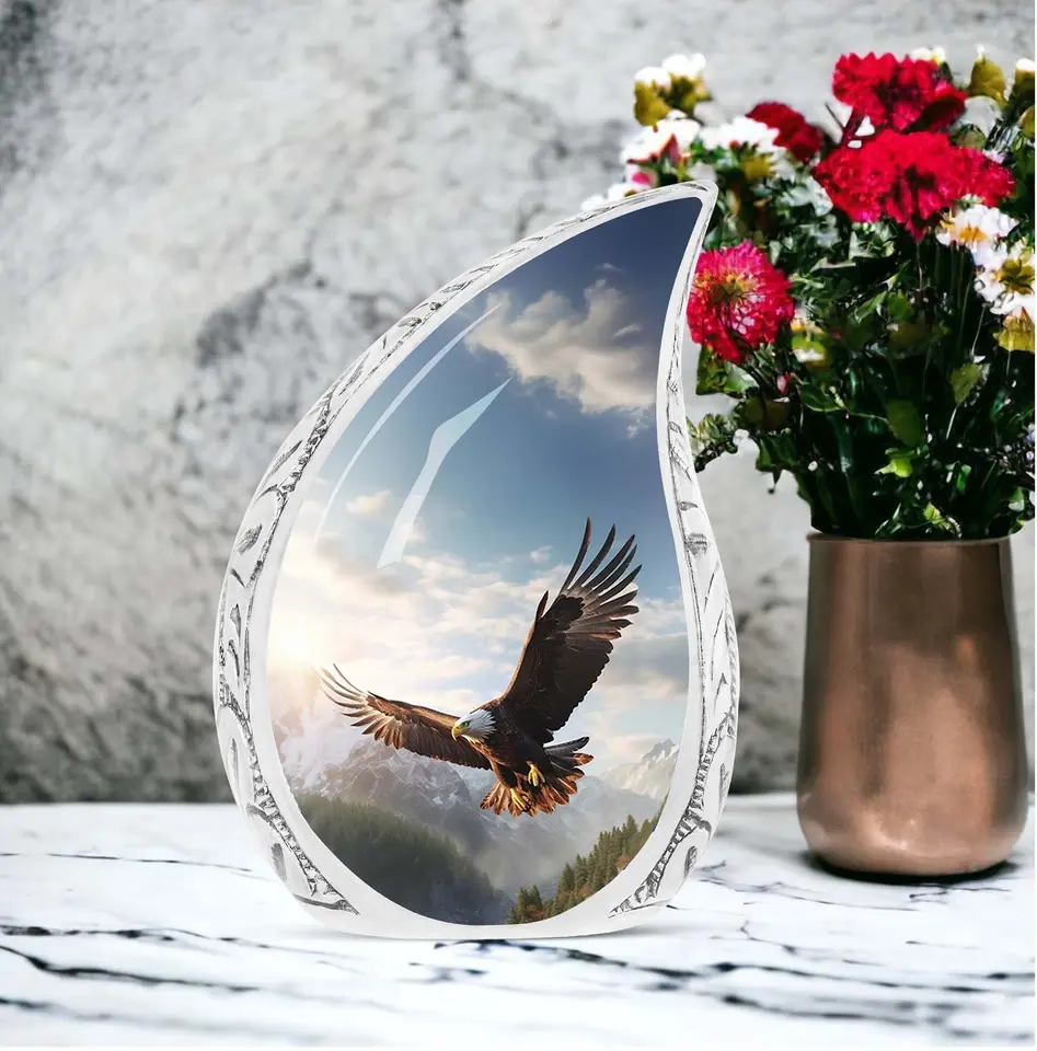 Urna Funeraria Grande con Diseño de Águila Volando en un Valle, Recipiente para Cenizas
