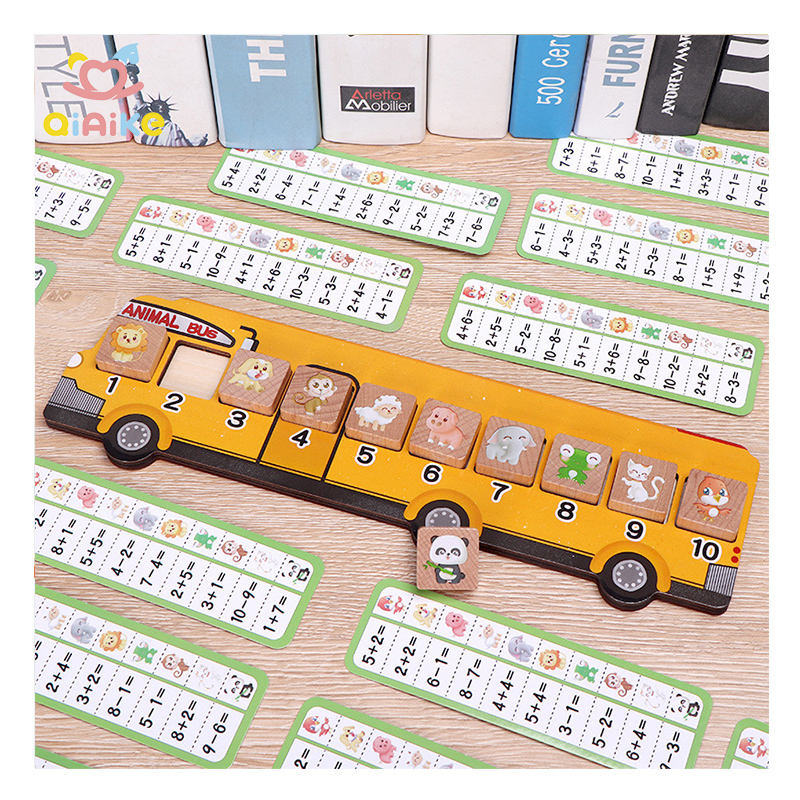 Juguetes educativos tempranos de autobús de matemáticas de animales con 100 juegos de Ejercicios de Matemáticas hechos de Juguetes Educativos de madera para niños