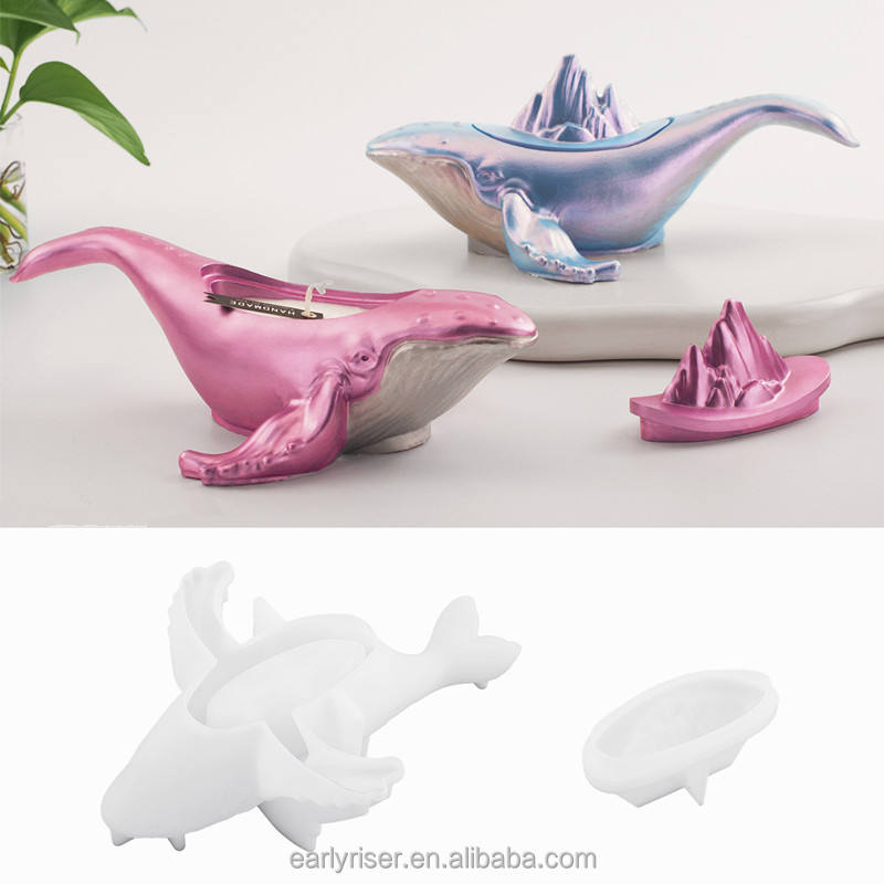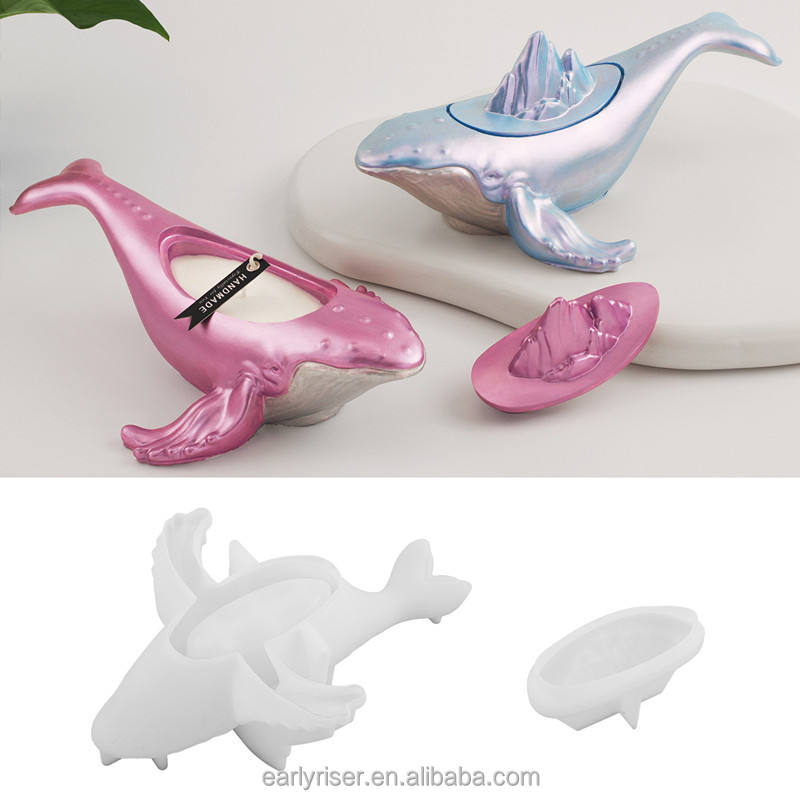 Molde de Silicona para Resina Epoxi, Yeso y Cemento, Diseño de Ballena Marina, para Hacer Cajas de Almacenamiento y Espejos