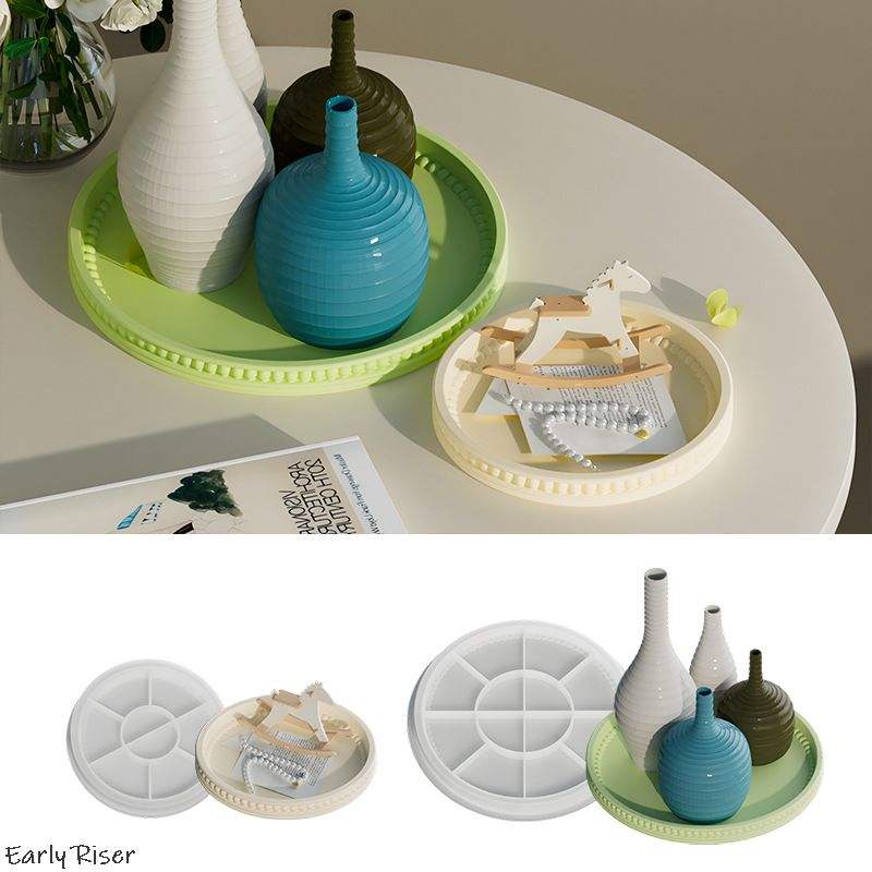 Molde de Resina para Organizador de Bandejas Redondas con Cuentas de Burbuja, Molde de Silicona para Manualidades, Plato para Aromaterapia y Yeso