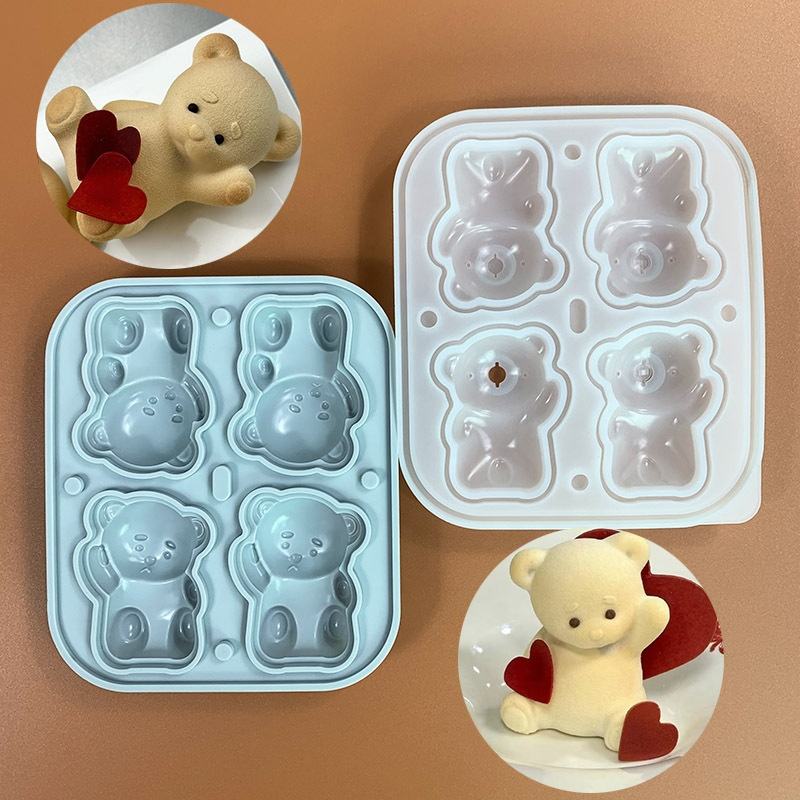 Early Riser Día de San Valentín Oso ondulante Molde de silicona Oso de peluche Chocolate Mousse Molde Jelly Pudding Cake Mold