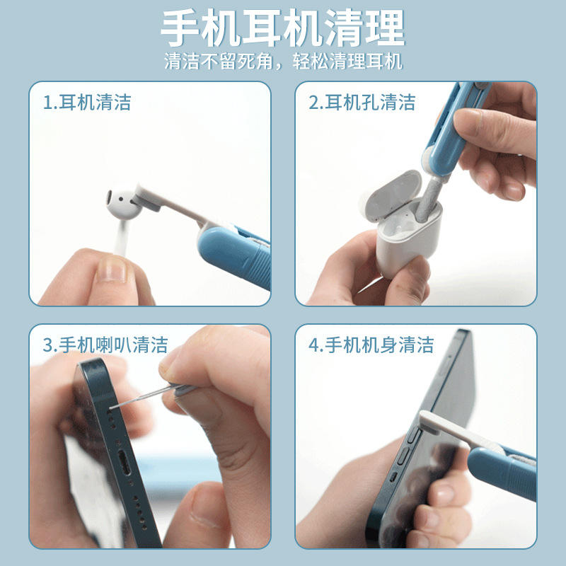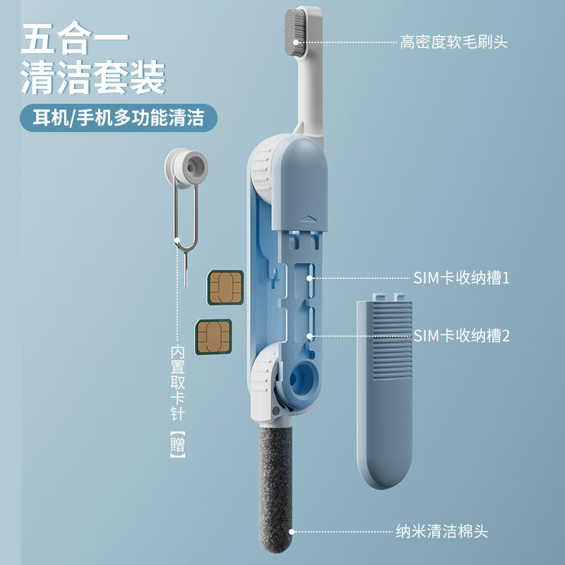 Earphone Cleaning Pen Multi Functional Portable Storage Kit Grey Peacock Blue Set
