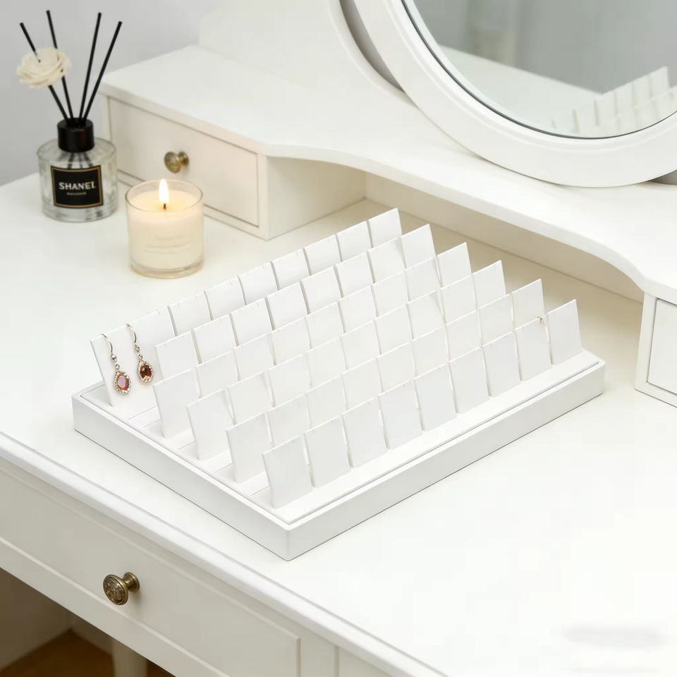 Expositor de Pendientes de Alta Gama, Hecho a Mano, Clásico, Cubierto de Terciopelo Blanco, Soporte de Exhibición de Joyería para Pendientes, Set de Exhibición de Joyería