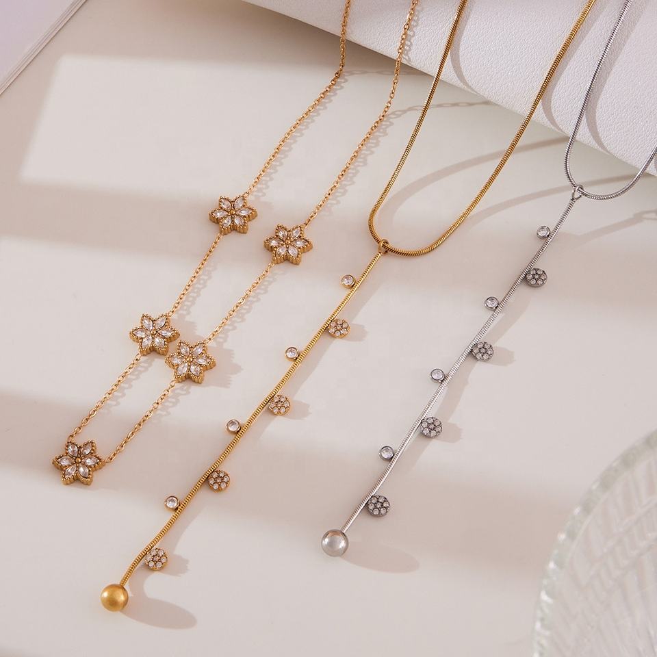 Juego de pendientes 5A Zirconium Rose Pattern Beaded Chandelier Collar para mujer, cadena de mano de acero inoxidable