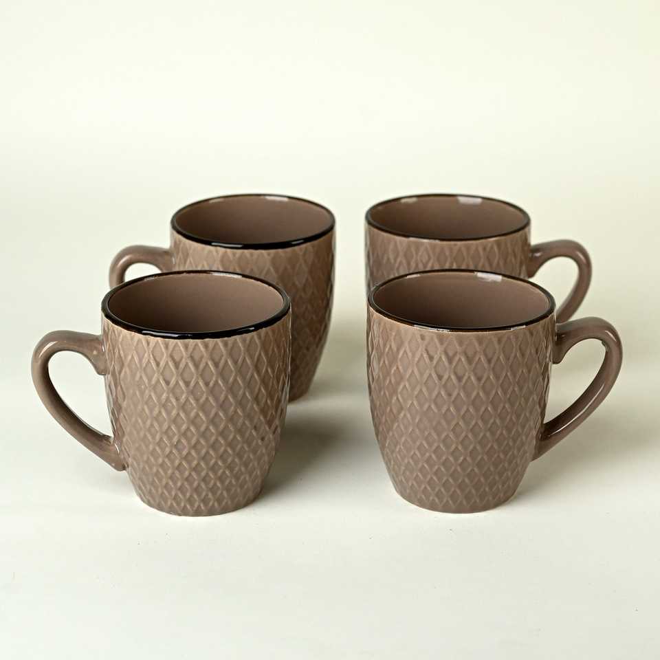 Tazas de Café de Cerámica con Diseño de Tonos Tierra, Capacidad de 200 ml, Aptas para Lavavajillas y Microondas, Material de Arcilla para Uso en el Trabajo y en el Hogar, Juego de 4