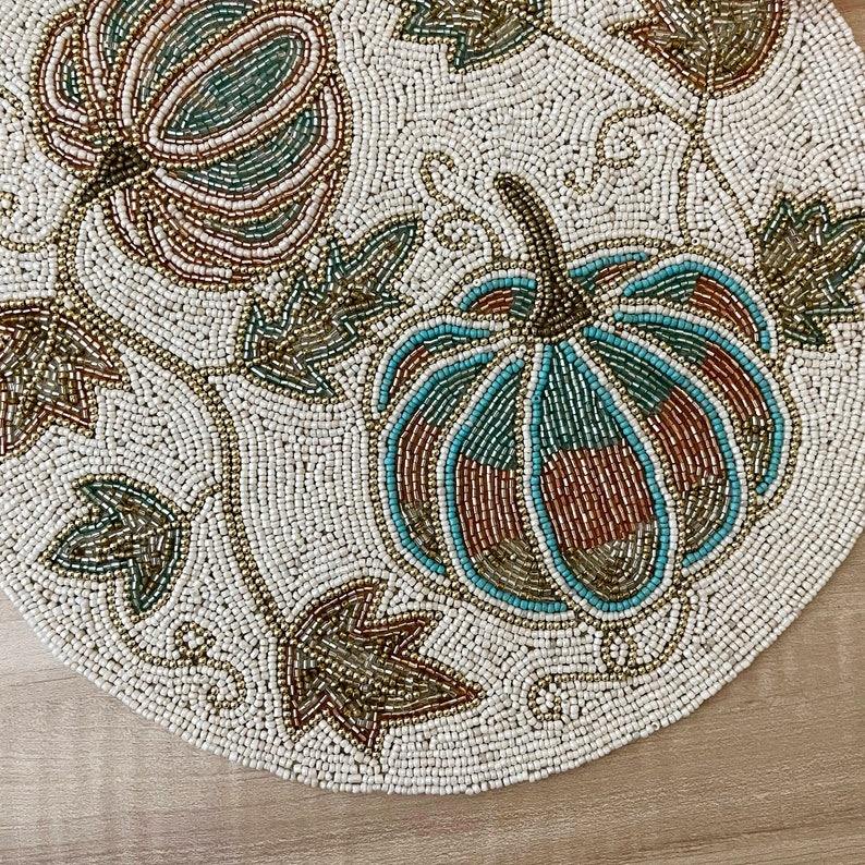 Camino de Mesa y Manteles Individuales de Poliéster con Diseño de Plantas Bordadas con Cuentas, Fáciles de Lavar, Personalizables, para Mesa de Comedor