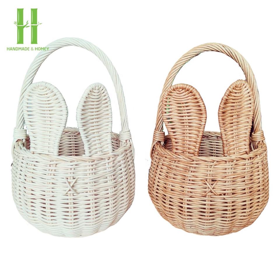 Cesta de almacenamiento de conejito de Pascua Cesta de almacenamiento de ratán bohemio Cesta multiusos tejida a mano Embalaje OEM en Vietnam