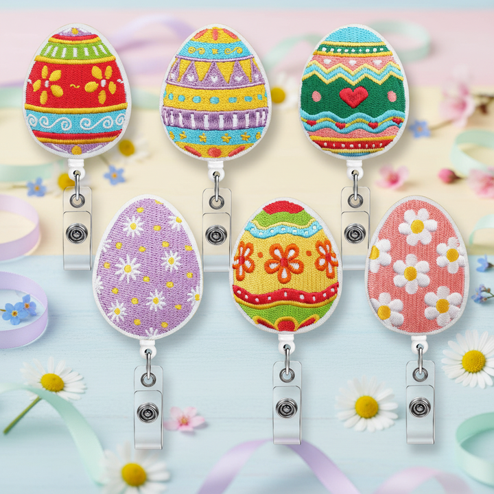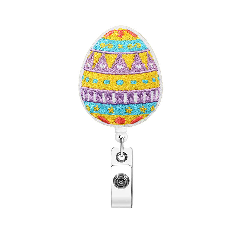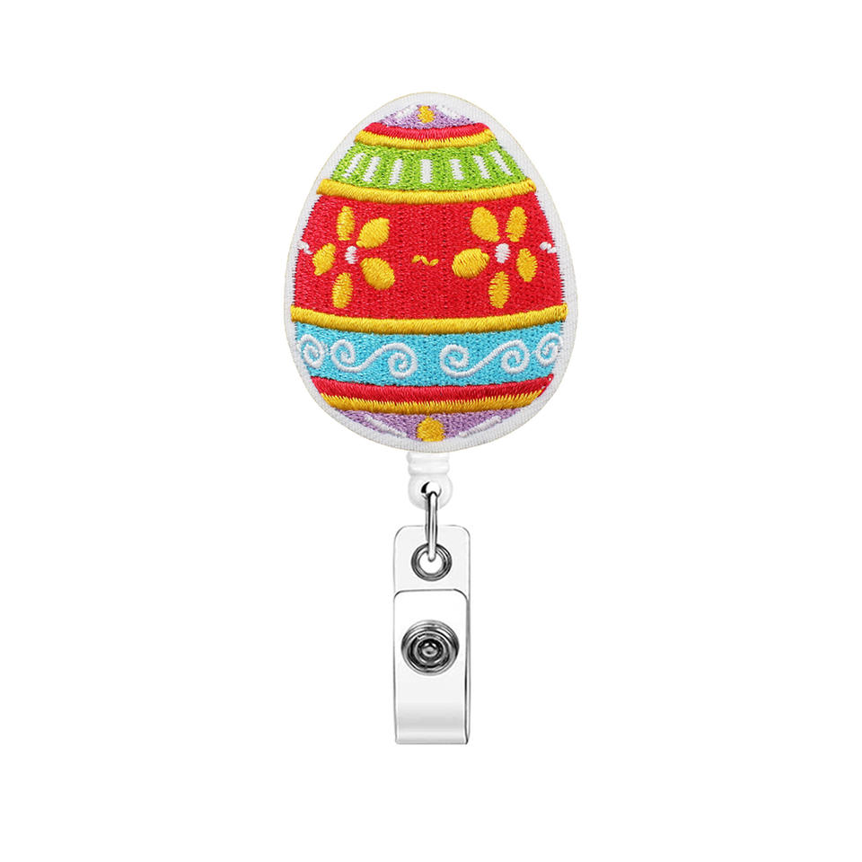Portacredenciales Retráctil de Fieltro con Forma de Huevo de Pascua Colorido, Regalo para Médicos y Enfermeras, con Hebilla Extraíble, Accesorio para Tarjetas de Identificación
