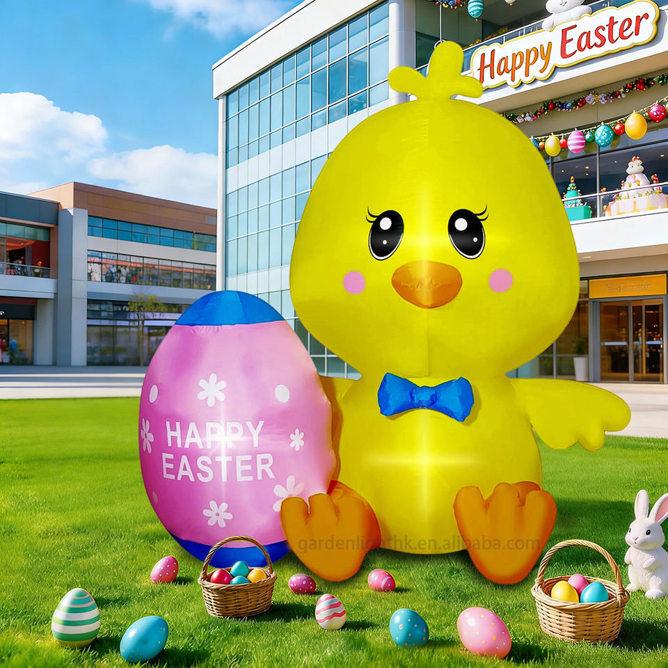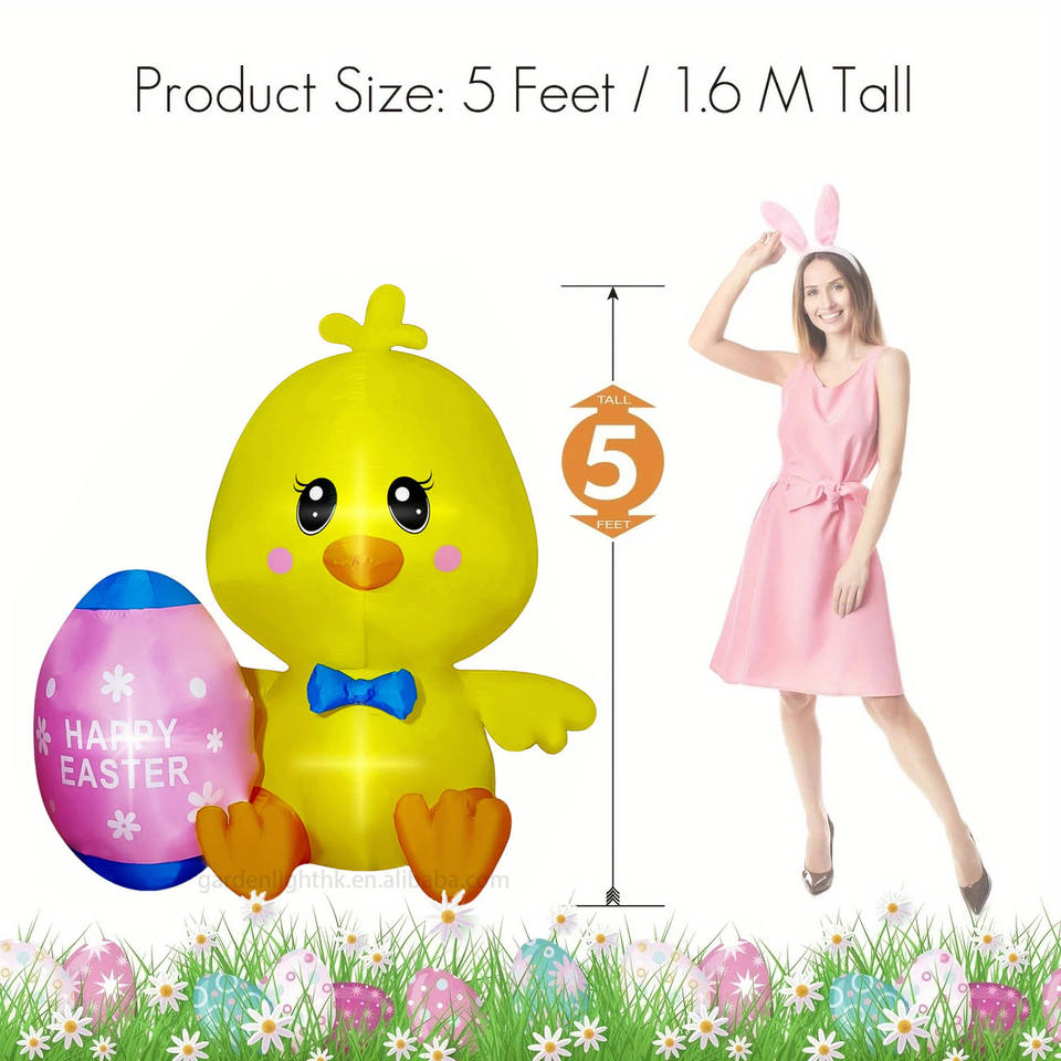 Nombre del producto:Decoración Inflable de Pascua: Pollito Amarillo de 1.5 m de Alto con Huevo