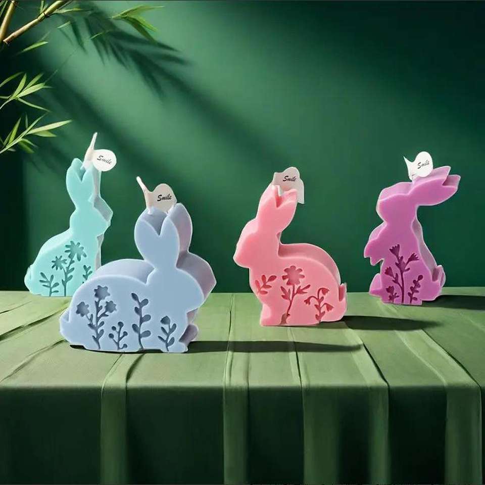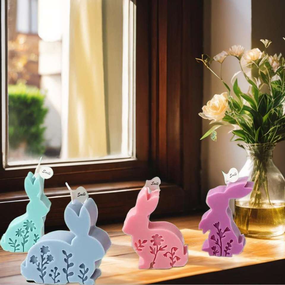 Molde de Silicona para Velas de Aromaterapia con Forma de Conejo de Pascua, Molde de Jabón Hecho a Mano con Flores en Relieve, Molde de Yeso y Resina Epoxi