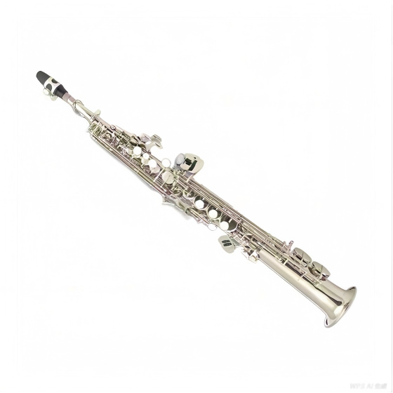 Saxofón soprano en Si bemol, marca Eastern Music, de alto rendimiento, plateado brillante.