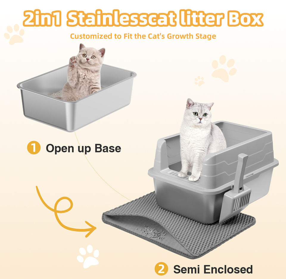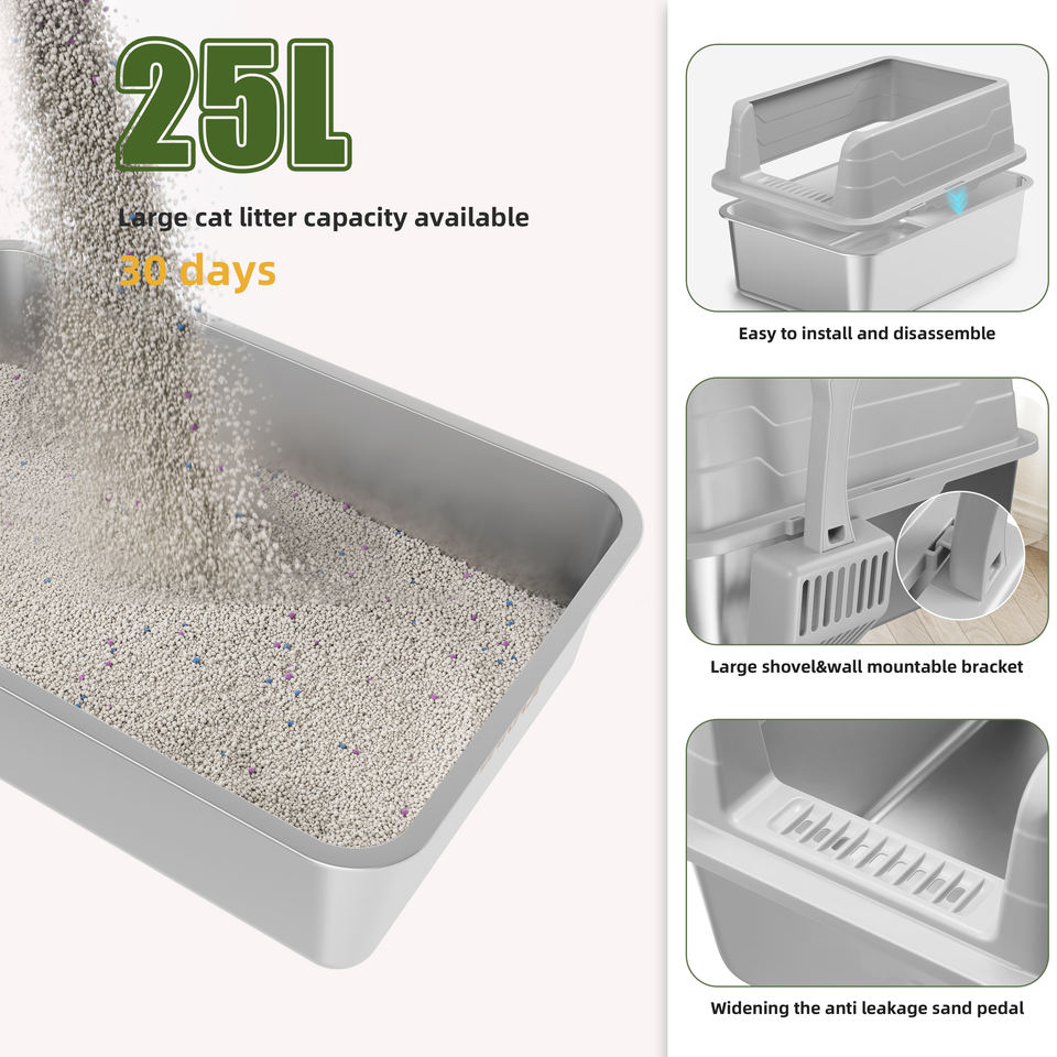 Bandeja de arena para gatos de metal personalizada de fácil limpieza Caja de arena semicerrada de acero inoxidable para gatos