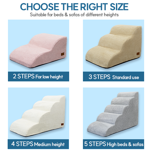 Escaleras para Perros Modernas de 4 Peldaños, Fáciles de Subir, de Espuma Viscoelástica Beige y Tela, Antideslizantes, con Funda Extraíble, Ligeras y Duraderas para Interiores