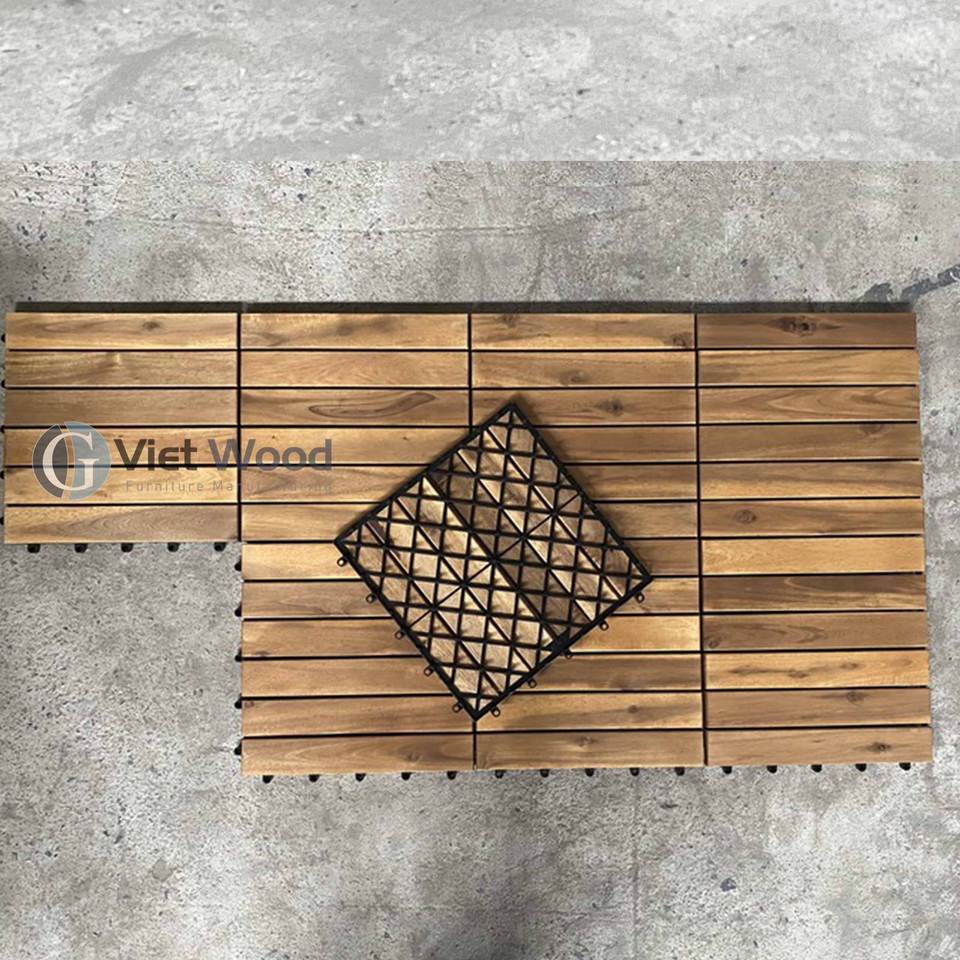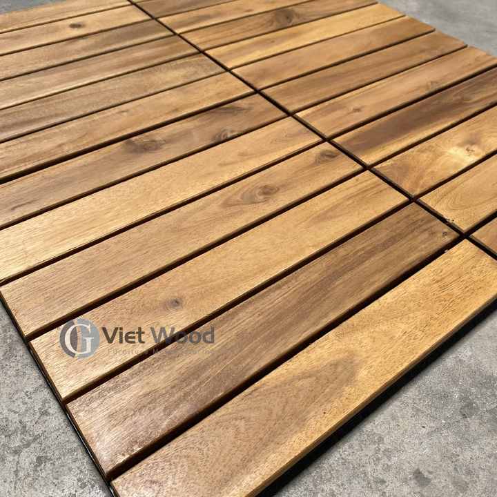 Baldosas de Madera de Acacia de Fácil Instalación, Sistema de Encaje, para Pisos de Patio Exterior