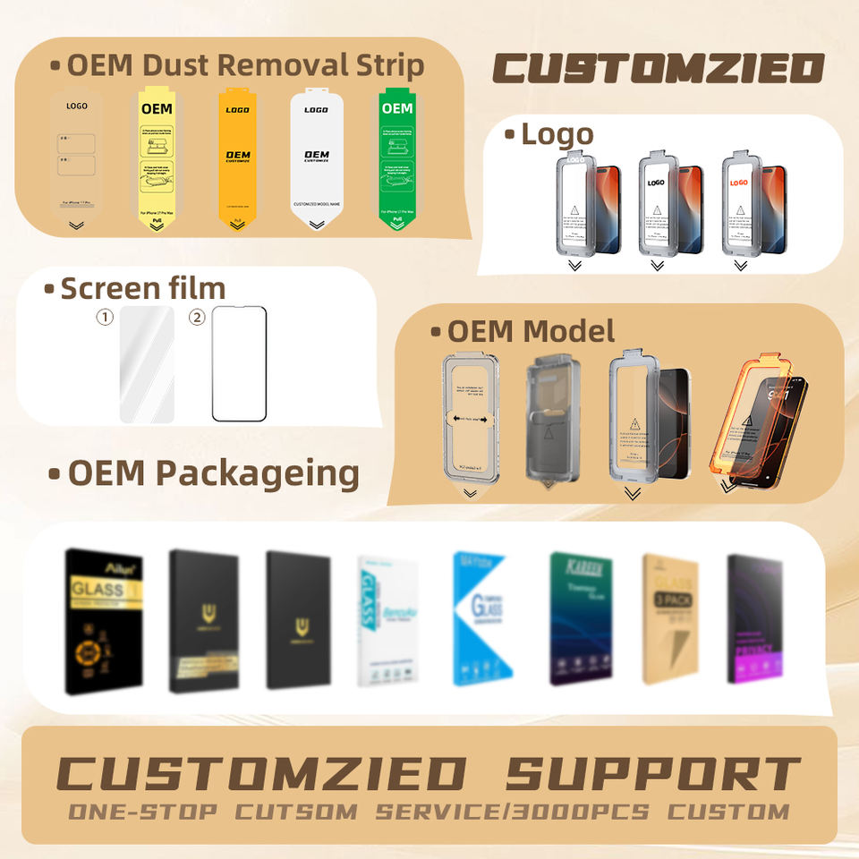 Protector de Pantalla de Vidrio Templado de Fácil Instalación para iPhone 14 15 16 Pro Max, Aplicador de Polvo para Uso en Teléfonos Móviles