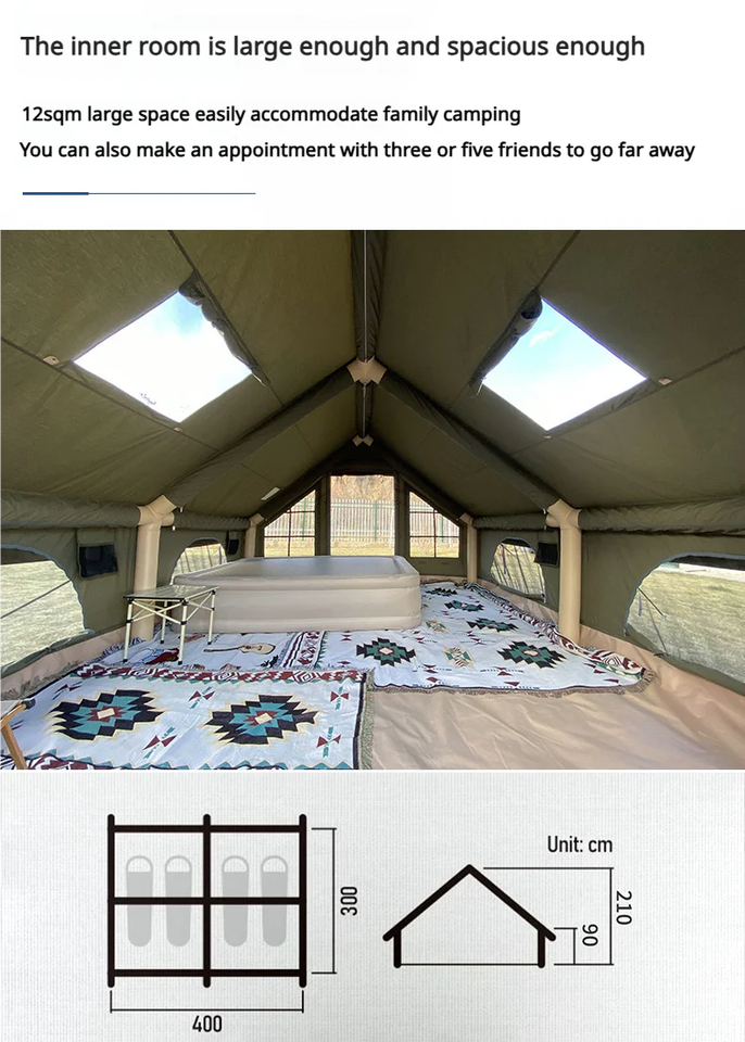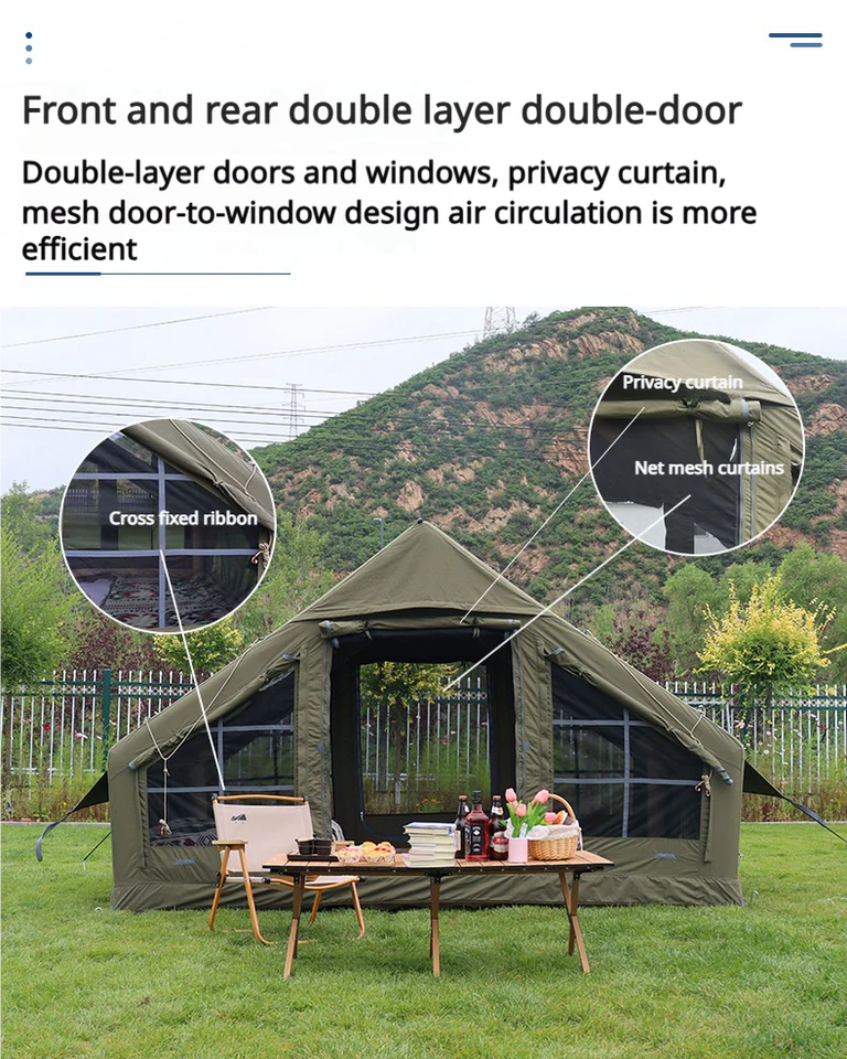 Carpa Inflable para Camping, Fácil de Instalar, Impermeable y Resistente al Viento, para las 4 Estaciones, con Ventanas y Puertas de Malla, Incluye Bomba