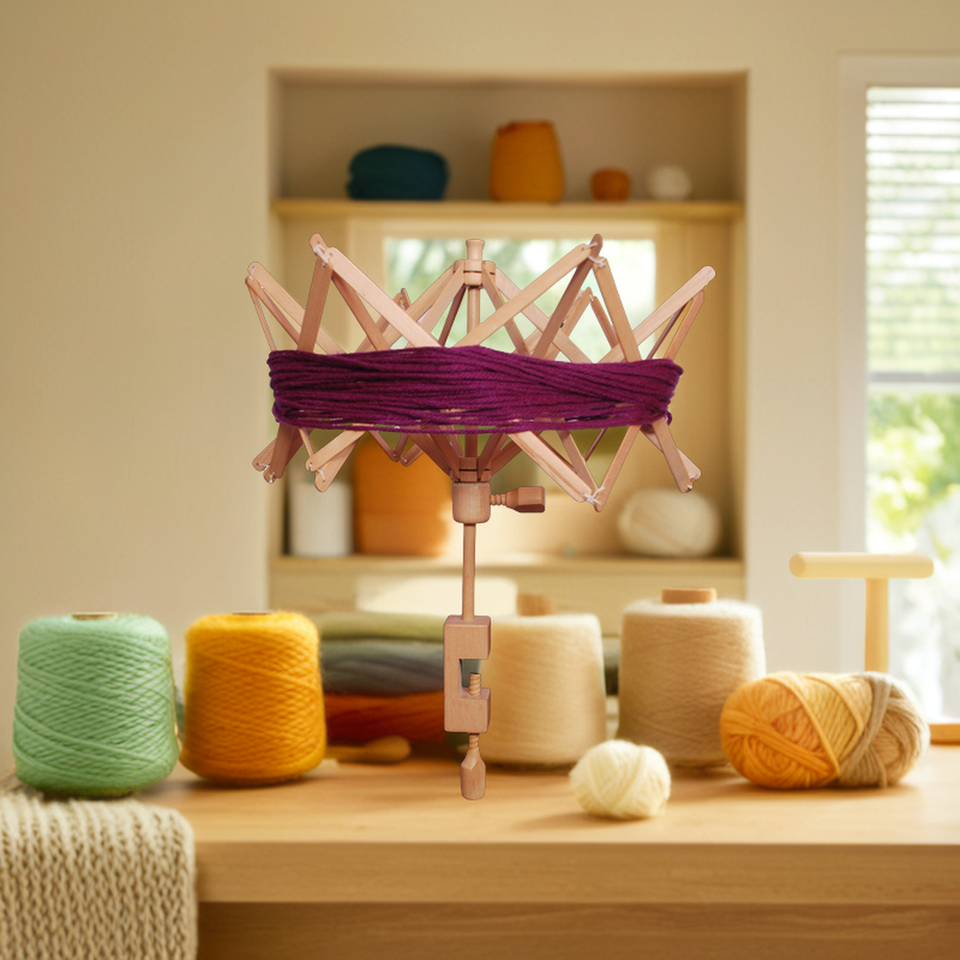 Usage:Holds hanks or skeins of yarn in place as you wind them into balls.