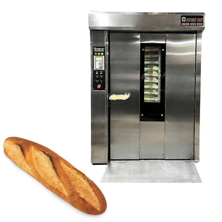 Horno rotatorio de 24 bandejas fácil de usar con carro de hierro de acero inoxidable para pan, tostadoras de Gas Baguette, hornos de Pizza hechos en Vietnam