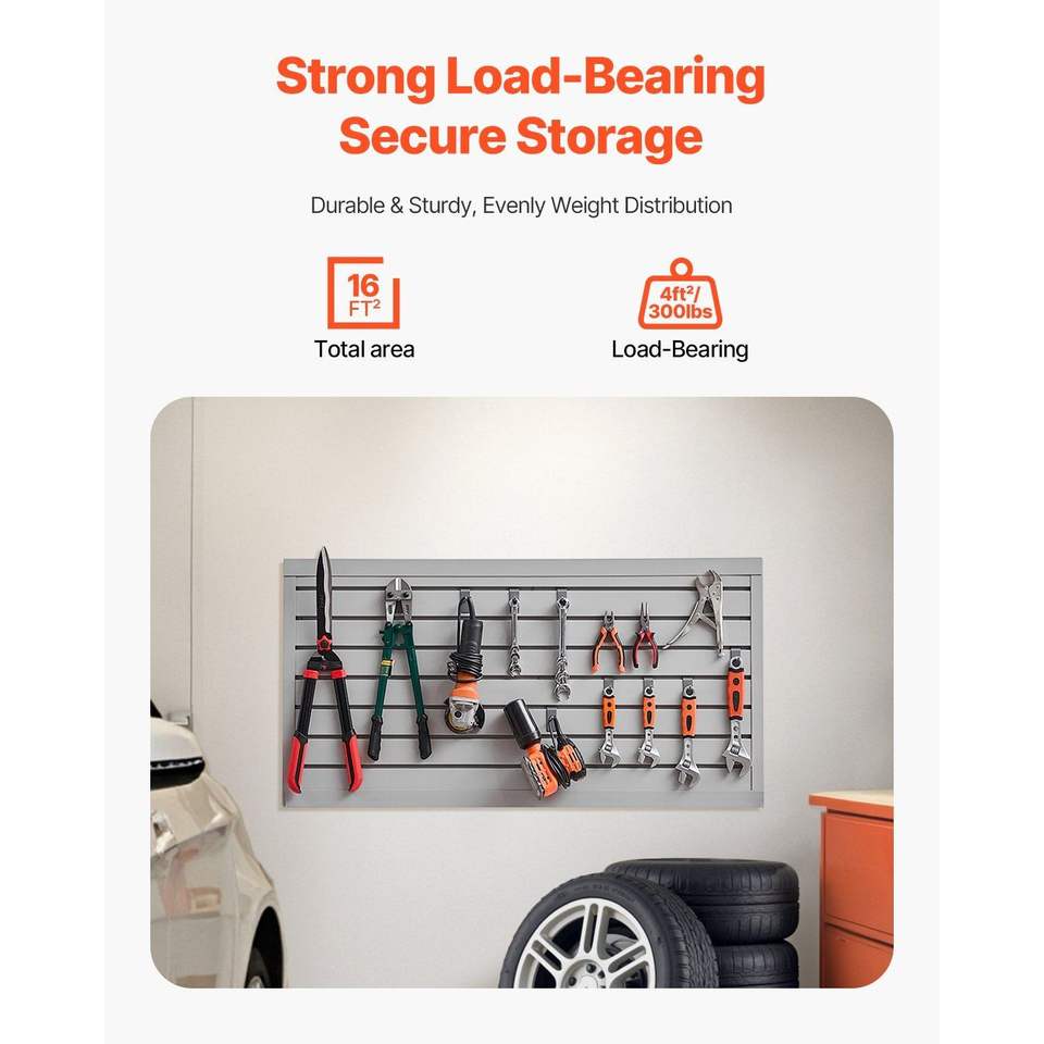Panel de Pared de PVC Gris Ajustable y Fácil de Instalar, 2 x 4 pies, Diseño Modular, Solución de Almacenamiento Duradera para Garaje