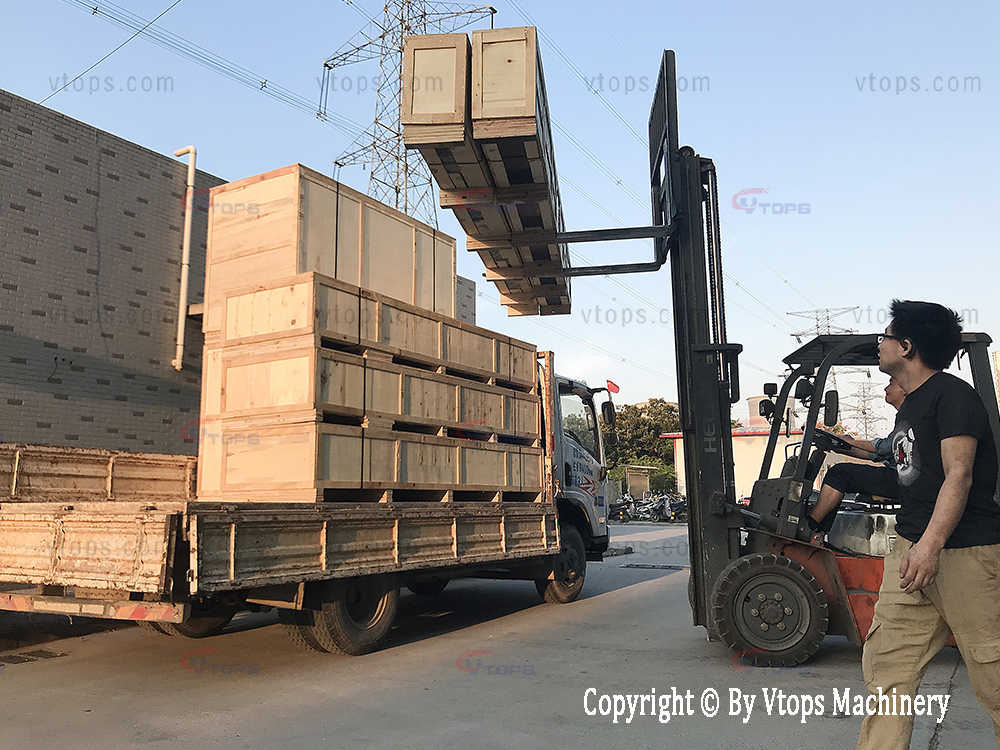 Cubierto por película de plástico, embalaje en cajas de madera de exportación en contenedor.