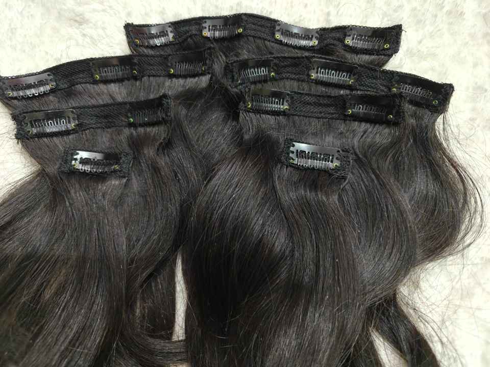 Extensiones de cabello humano virgen Remy europeo 100% fáciles de usar, extensiones de cabello con Clip, clips de trama de máquina de alta calidad