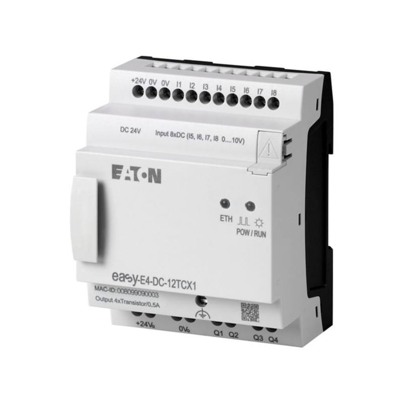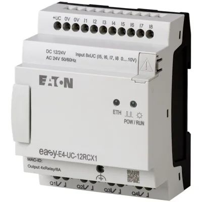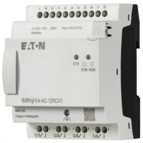 CPU easyE4, 8DI4RO, fuente de alimentación de 100 - 240 V CA/CC, con teclado, interfaz Ethernet, terminal de tornillo-V CC