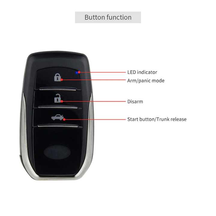 Nombre del producto:Sistema de alarma para coche con arranque remoto, código variable, botón de arranque/parada y PKE, DC12V.