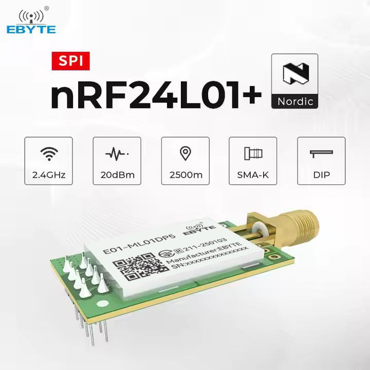Módulo Inalámbrico Ebyte E01-ML01DP5 de 2.5km, NRF24L01 PA LNA 20dBm 2.4GHz, Módulo Transceptor Inalámbrico de Bajo Costo y Largo Alcance, SPi