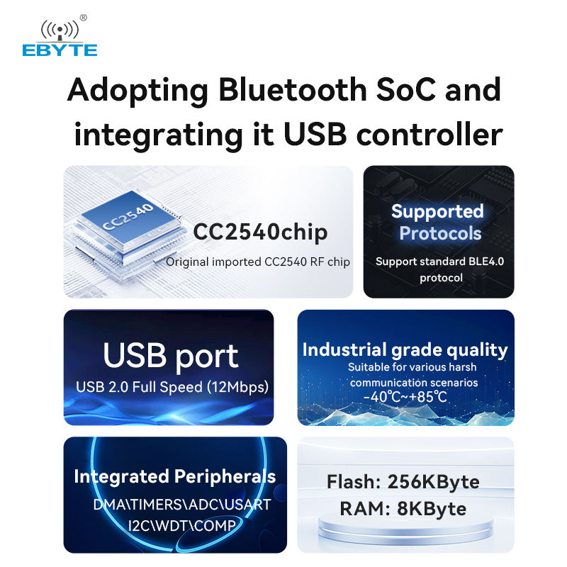Módulo Inalámbrico Bluetooth Ebyte E104-2G4U04A con Interfaz USB CC2540 2.4GHz BLE 4.0, Adaptador Receptor USB Bluetooth
