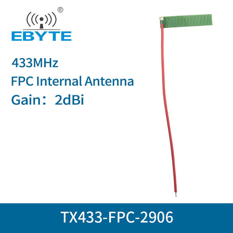 Antena interna FPC de parche con pegamento Ebyte TX433-FPC-2906 mini, con cable de 1.13mm y conector U.FL de 90 grados, 433MHz