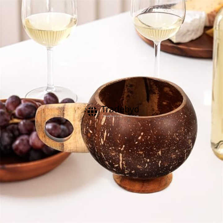 Taza de cáscara de coco ecológica para batidos y jugos, vasos naturales hechos a mano para compradores conscientes de Tradebyd